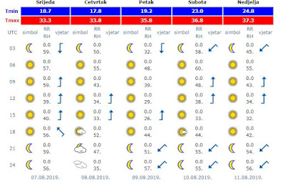 Još sjutra se može očekivati temperatura od 34 stepena, a već narednih dana biće u porastu. U petak će dostići 36 stepeni, a za vikend i 38.