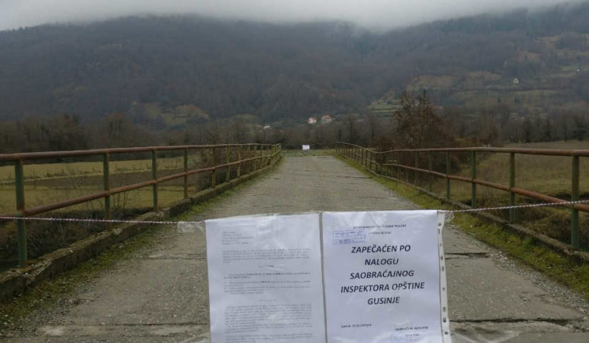 obavještava građane da je zatvoren prolaz preko mosta “Martinoviće – Višnjevo”