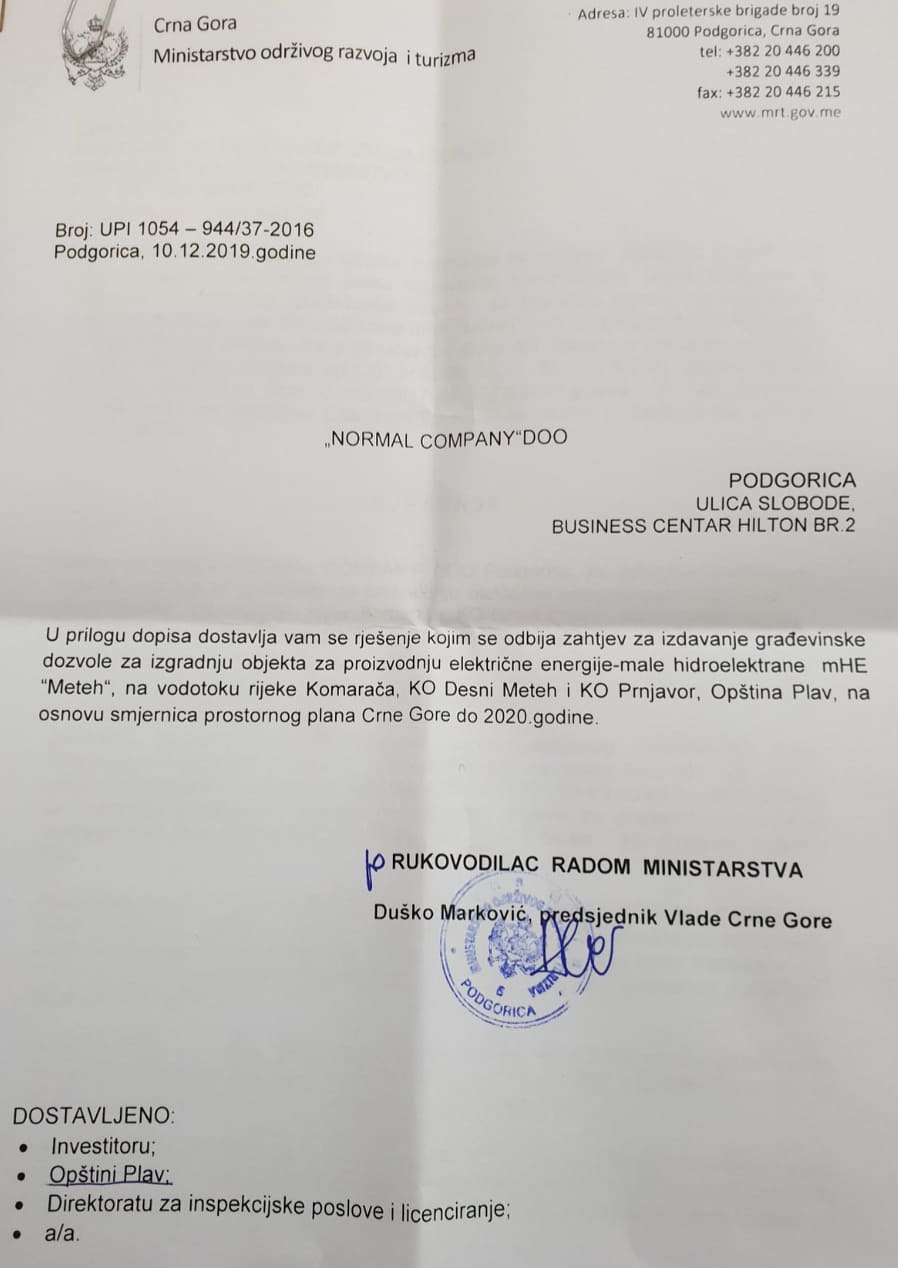 početka bila protiv izgradnje malih hidroelektrana na teritoriji opštine Plav,