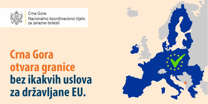 Crna Gora danas otvara granice za građane iz država koje su članice EU. To znači da turisti u Crnu Goru ulaze bez testova i ne moraju ići u karantin.