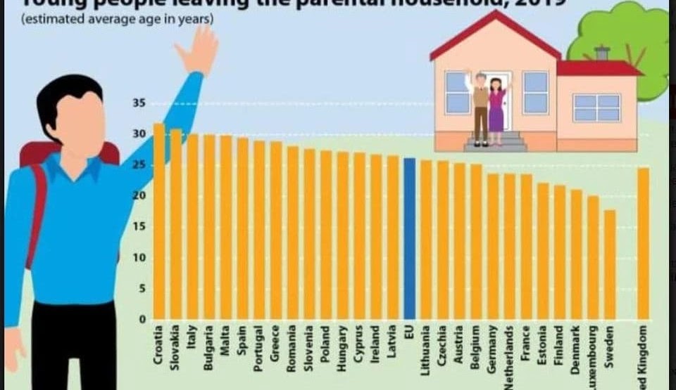 Prema podacima Eurostata mladi ljudi u Švedskoj najranije se osamostaljuju, odnosno napuštaju roditeljski dom. Statistika na nivou Evropske unije pokazuje da mladi Hrvati u prosjeku najduže žive kod roditelja, skoro do 32. godine.