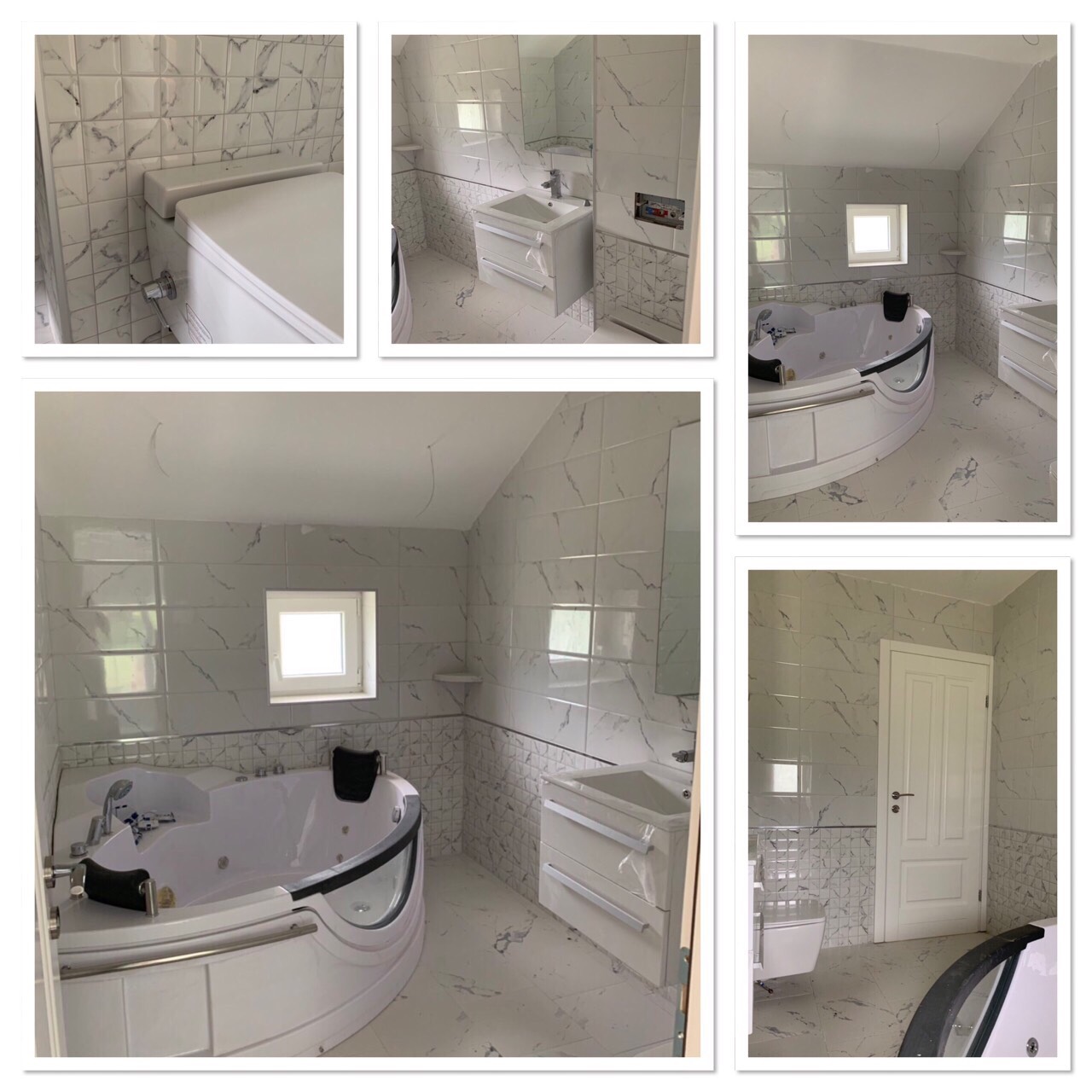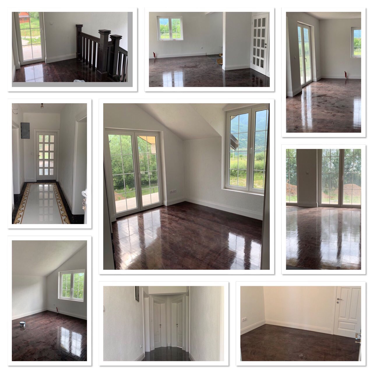 2 sprat: 4 spavaće sobe, soba za garderobu, 2 terase , kupatilo sa jacuzzi kadom. Kuća ima parno, podno grijanje i posjeduje građevinsku dozvolu.